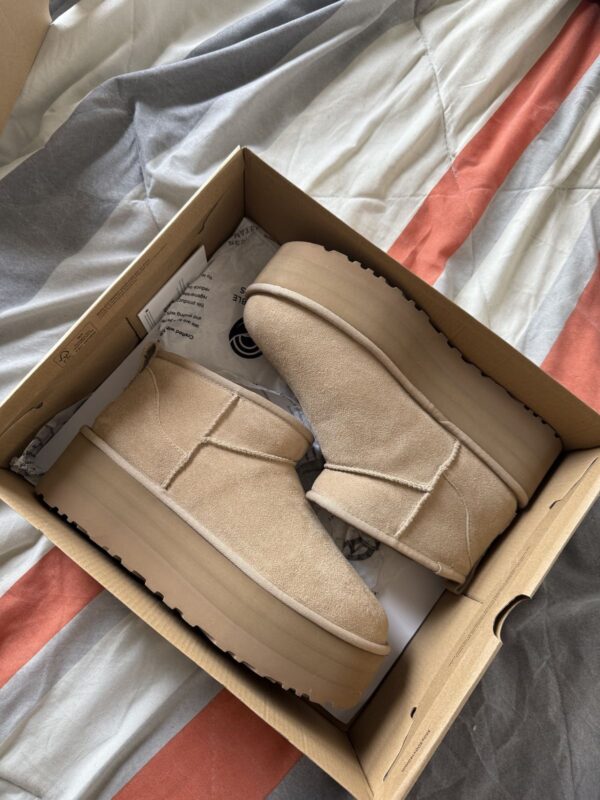 Sunt perfecți pentru iarnă: super călduroși, mega comozi și platforma îi face să arate wow. Culoarea Sand e foarte frumoasa și se potrivește la orice. Îi recomand fără ezitare , pret super bun!